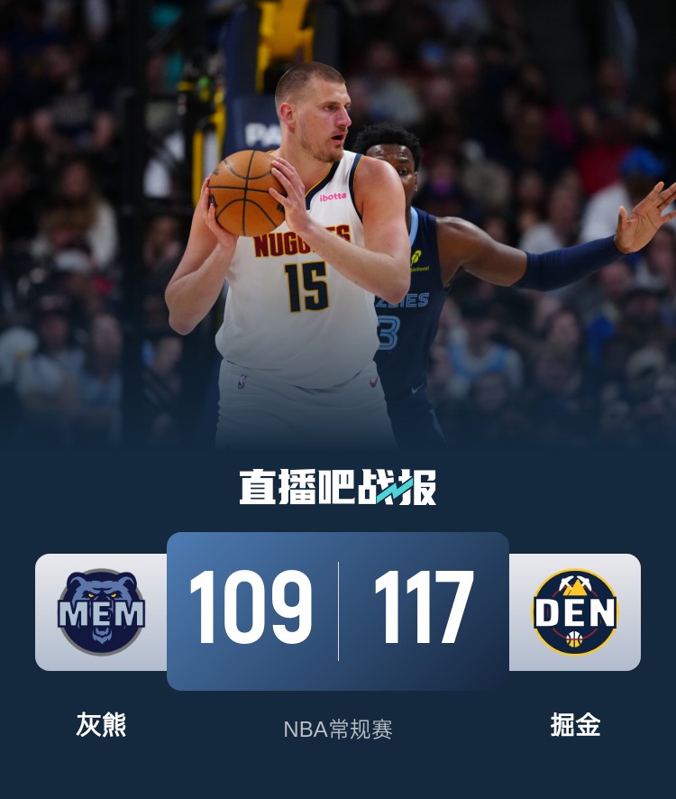 4月12日讯 NBA常规赛今日继续开打,掘金今日坐镇主场迎战灰熊。两支球队目前都没有犯错的机会,掘金需要取胜守住第四的排名,灰熊则需要取胜冲击一个直升季后赛的名额。