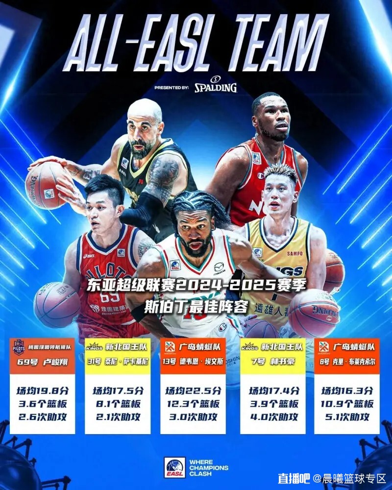 近日,东亚超级联赛(EASL,简称:东超)官方正式公布了2024-2025赛季最佳阵容名单。