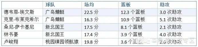 以下为5名球员的详细数据: