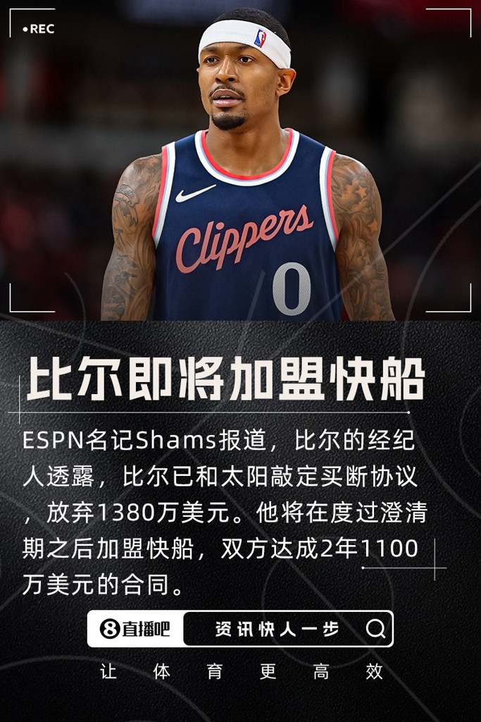 随着快船后场与詹姆斯-哈登搭档的位置空缺,比尔一旦与菲尼克斯太阳达成买断协议,快船显然将成为他的理想去处。