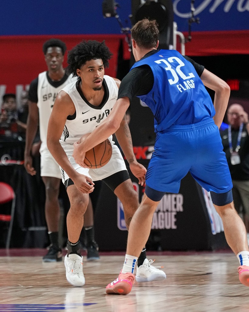 7月13日讯 今天结束的一场夏季联赛,马刺76比69击败独行侠。榜眼哈珀和状元弗拉格正面对决,两人都有出色发挥,哈珀打了19分钟,12投5中,三分4中0,罚球7中6拿到16分6篮板2助攻2抢断1盖帽,弗拉格出战31分钟,21投10中,三分9中3、罚球13中8砍下全场最高31分外加4篮板1助攻1盖帽。