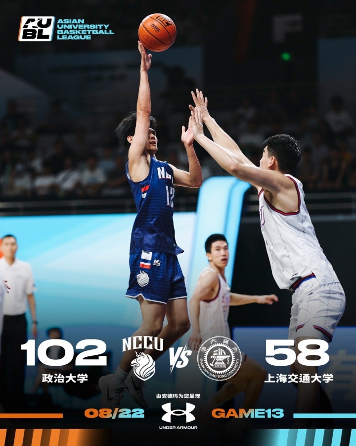 08月22日讯 AUBL亚洲大学生篮球联赛1/4决赛,上海交通大学以58-102惨败中国台北的政治大学,无缘四强。