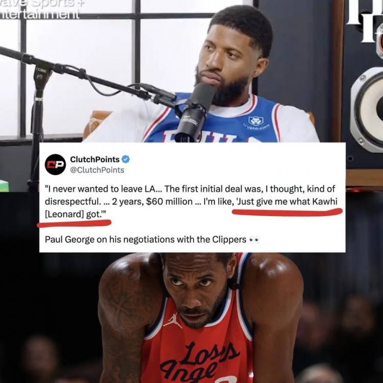 他当时说:“我从未想过离开洛杉矶。他们最开始给我的合同,我想那有些不尊重人,2年6000万。我说,‘给我莱昂纳德得到东西。’”