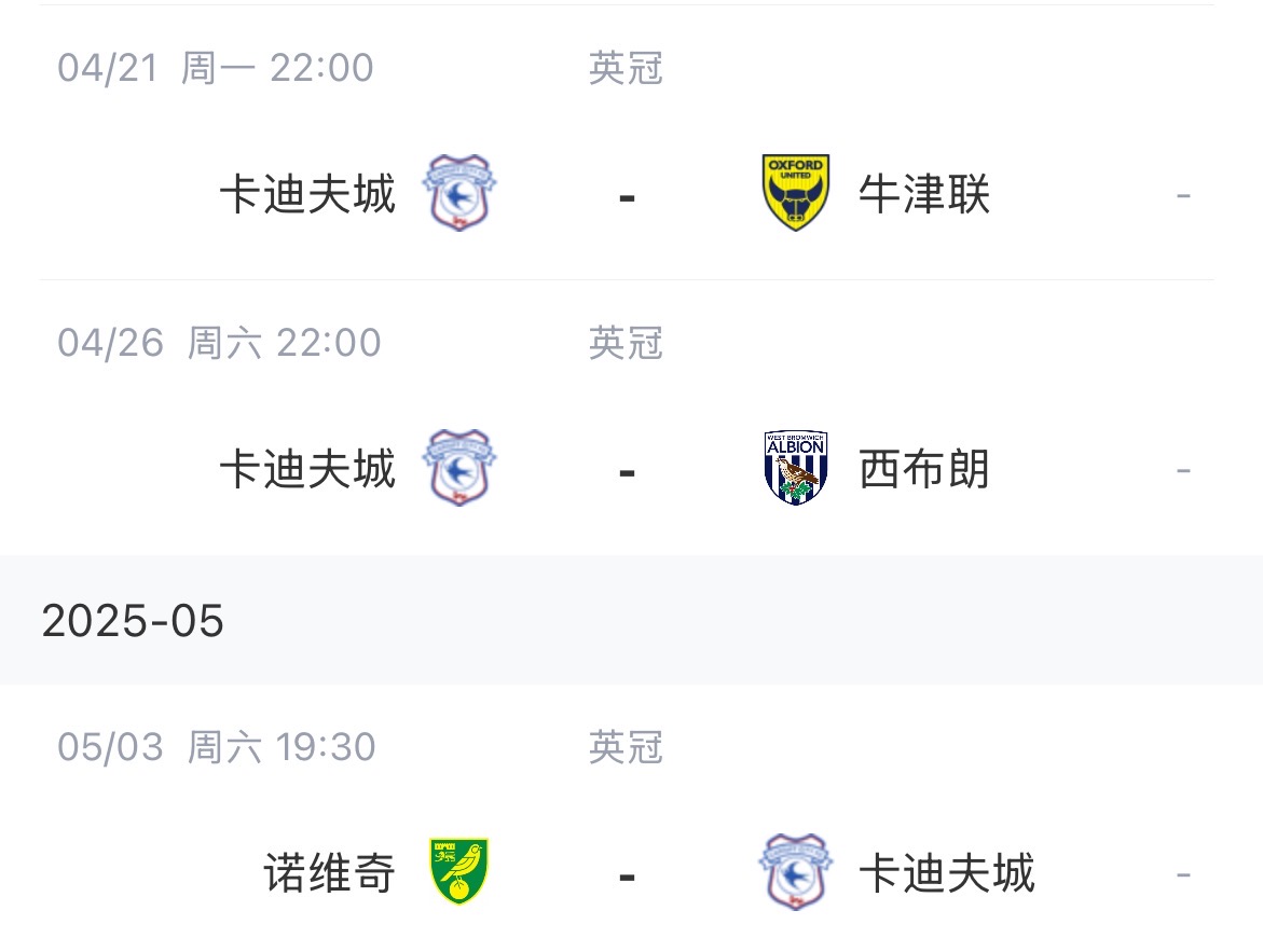 卡迪夫城本赛季剩余赛程