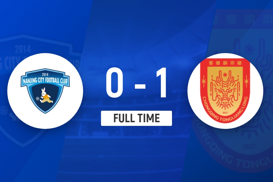 全场比赛结束,重庆铜梁龙1-0击败南京城市。