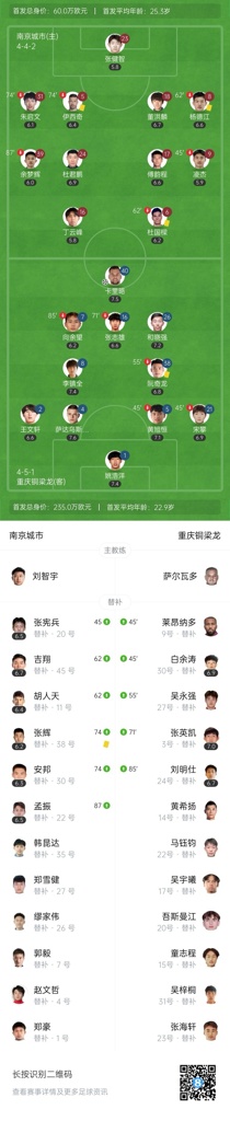 半场战罢,南京城市暂0-0重庆铜梁龙。