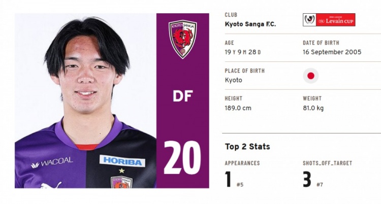 喜多壹也出生于2005年9月16日,身高1.89米,去年升入京都不死鸟一线队,已经为球队出战5场比赛,但是没有在J联赛亮相过。