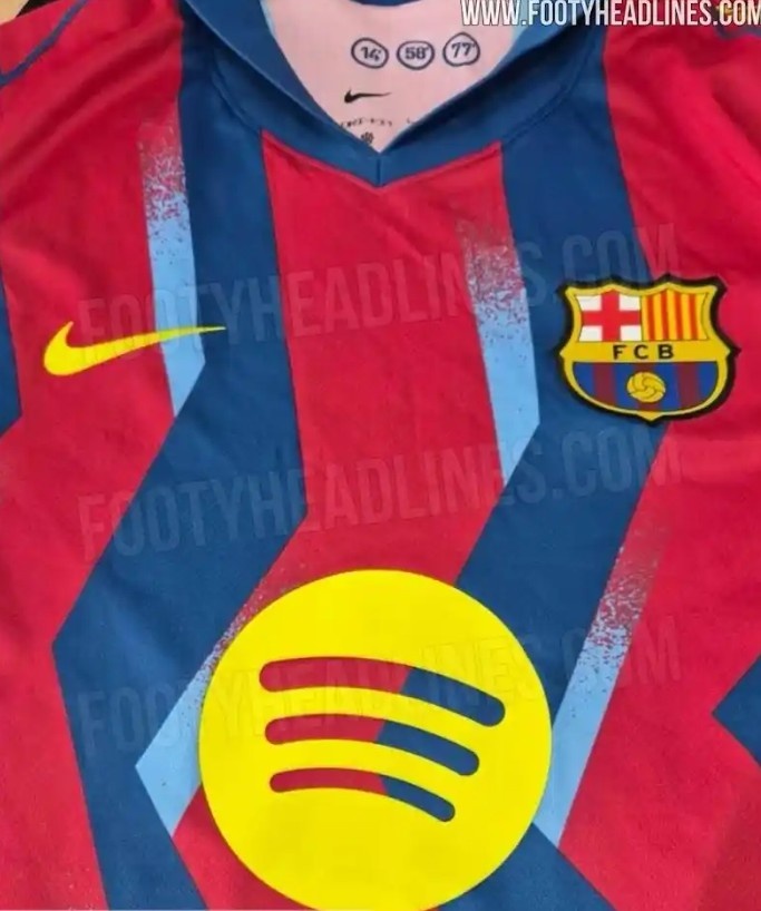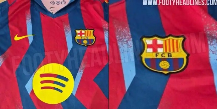 7月29日讯 巴萨将在新赛季国家德比身穿特别版球衣出战,足球装备情报网站Footy Headlines也曝光了该款球衣设计。