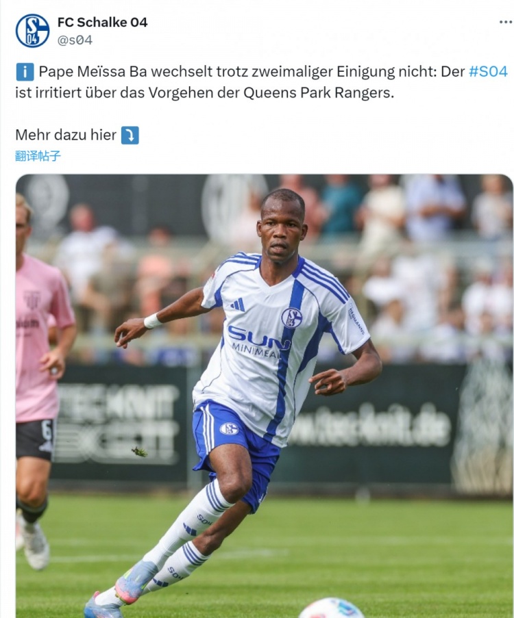 沙尔克发布声明表示,尽管俱乐部两次与女王公园巡游者就帕佩-梅伊萨-巴的转会达成一致,但最终这笔交易未能成行,女王公园巡游者8月13日凌晨通知了沙尔克,他们决定放弃引进球员。