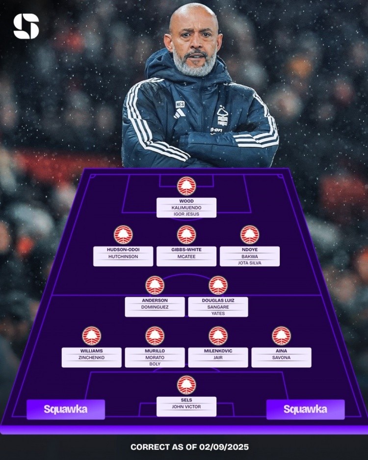 中场:安德森(多明戈斯)、道格拉斯-路易斯(桑加雷/耶茨)、奥多伊(哈钦森)、吉布斯-怀特(麦卡蒂)、恩多耶(巴卡瓦/若塔-席尔瓦)